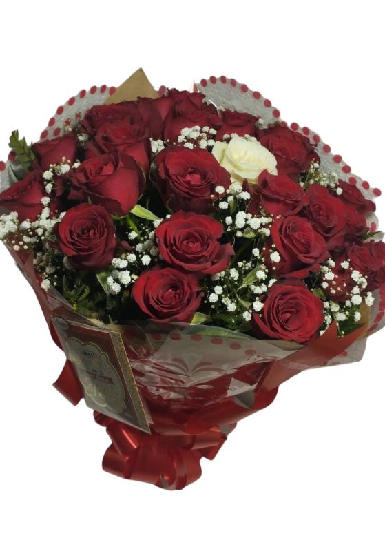 Buquê com 20 rosas vermelhas.