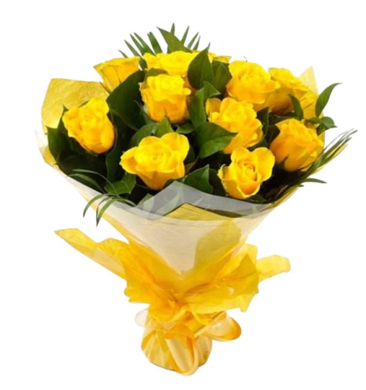 Buquê com 12 rosas amarelas.