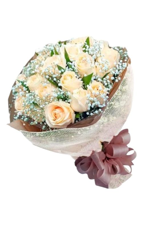 Apresentamos o Buquê de Rosas Champagne "Glamour", uma expressão sublime de beleza e requinte. Composto por 15 rosas em um tom champagne suave e luminoso, este buquê é perfeito para celebrar momentos especiais e transmitir sentimentos de carinho e admiração.